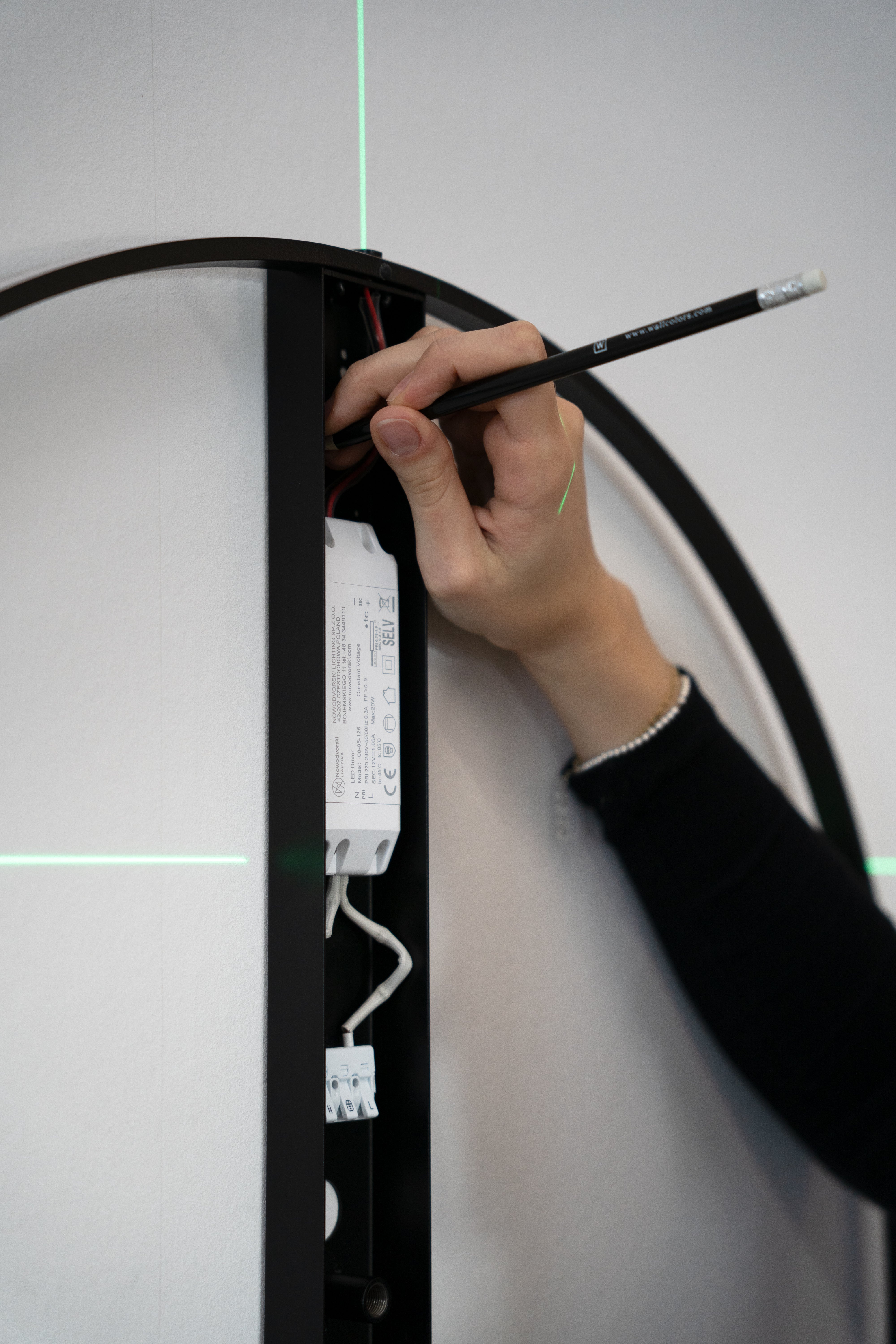Plan the placement of DOTS. Lighting on the wall. Using a spirit level or laser level, precisely measure and mark the drilling points. Precisely marking the mounting locations will ensure the lamp is mounted neatly and evenly.